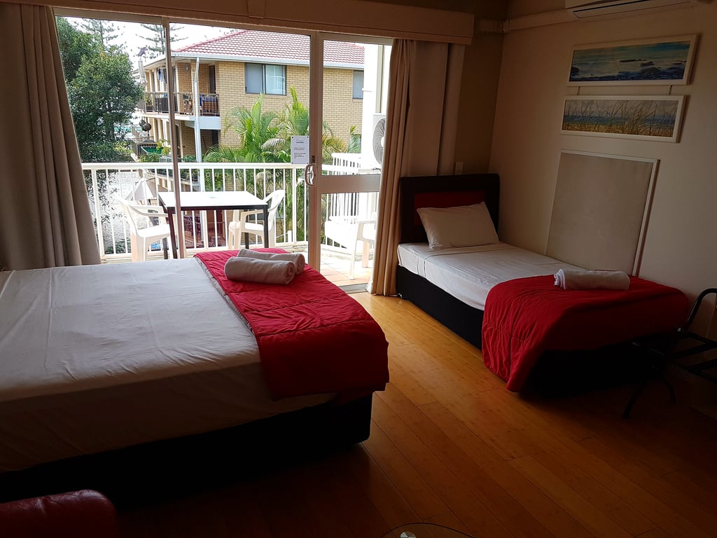 These rooms (one queen bed) are finished to a high standard and you will enjoy a very comfortable stay. The rooms are spacious with a balcony, tea/coffee making, microwave, and air conditioned. An extra bed can be proved (roll-away) for $30.